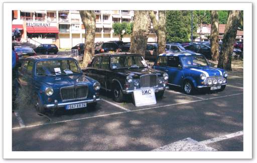 Cinq représentants du Club, mais que deux BMC 1100/1300: la Vanden Plas 1100 de Claude et Sylvie (qui attend sa Morris 1300) et la MG 1300 MK2 de José.